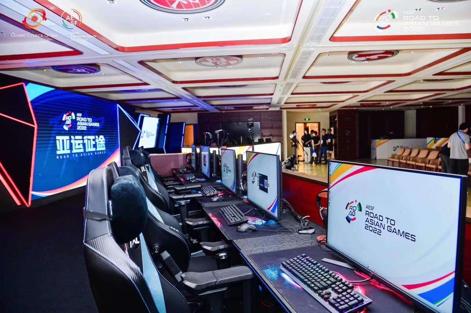 赛事介绍 由亚洲奥林匹克理事会(OCA)和亚洲电子体育联合会(AESF)联合创建的首个亚运电子体育——“亚运征途”(Road to Asia Games)官方赛事于7月22日至7月25日在中国棋院杭州分院智力大厦电竞中心举办。“亚运征途”不仅仅是杭州亚运会电竞比赛的前战,更是能够代表亚洲各国家和地区电子体育最高水平的赛事。赛事第一阶段已经在中国澳门圆满收官,第二阶段各国代表队将齐聚杭州智力大厦开展梦三国、街霸项目的角逐。 在刚刚结束的2023全球电竞运动领袖峰会暨腾讯电竞年度发布会上,AESF主席霍启刚先生一方面肯定了亚运征途赛事的价值,同时透露亚电体联将推出电竞亚洲杯,并在未来数年将其打造成全球最具竞争力的电竞国家队赛事。 现场风采