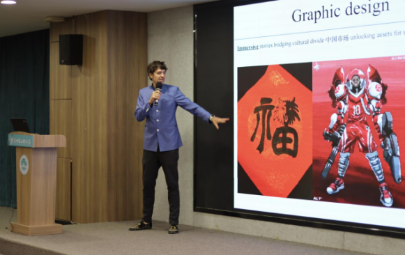 (约翰在分享他是如何帮助NBA球队设计中国元素的宣传内容)